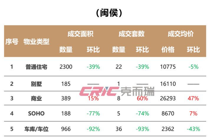 上周五区平凡住宅成交量环比小幅高涨,主力成交模式为保利屏西天悦,成交均价则受刚需住宅占比高涨,环比大幅下滑;上周闽侯平凡住宅成交量环比下滑显着,国贸江屿原为主力成交,成交均价环比下滑。