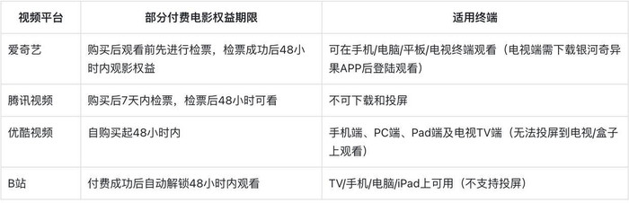 而这并非个别平台推出的律例。记者实测发现,爱奇艺、优酷、腾讯视频、B站等主流视频平台,均在付费电影购买界面中,易游国际以小号灰字标注“购买后48小时可看”大概“检票后48小时内无穷次不雅看”“购买48小时内维持在手机、电脑、平板、电视末端不雅看,48小时权柄失效后用户则需要再次购买”。