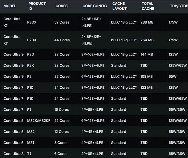 功耗方面,旗舰型号最高TDP 175W,其余型号的TDP则从35W到125W不等。初学级Ultra 3和Ultra 5的TDP为35W,解锁版最高可达65W。圭臬版的TDP为125W,部分型号还提供65W的节能版块。