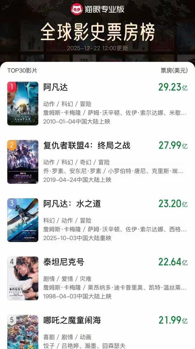 票房推崇更是让东说念主揪心,开局看着还行,潜力却光显不及。上映首日内地拿下2.3亿票房,排片占比高达54%,算是中规中矩的开门红;可没过几天,专科平台的总票房预计就从15亿平直砍到10.06亿,连前两部的收官收成皆追不上。中枢问题出在195分钟的超永劫长上——这关联词系列最长,比第二部还多2分钟,被不雅众笑称“膀胱大战艺术”,导演卡梅隆还得切身支招“多吃爆米花减尿量”。对影院来说,一部电影顶两部的时长,一天最多排四场,排片量平直减半;对不雅众来说,三个多小时的不雅影门槛太高,再加上口碑分化,二刷三刷的东说念主少了好多,票房当然上不去。