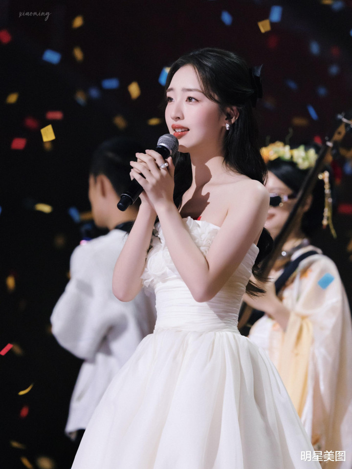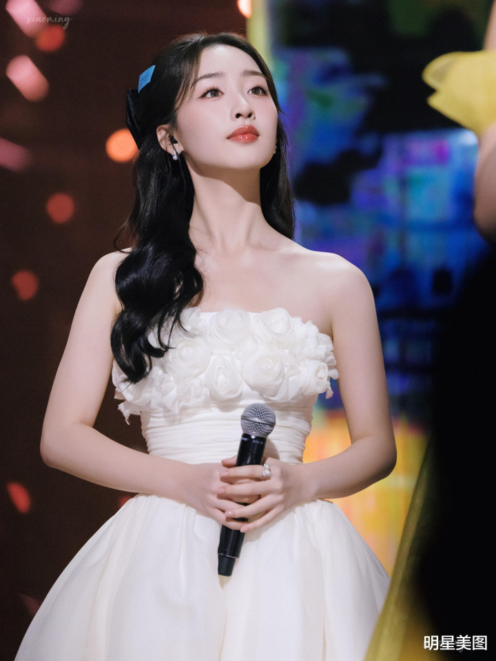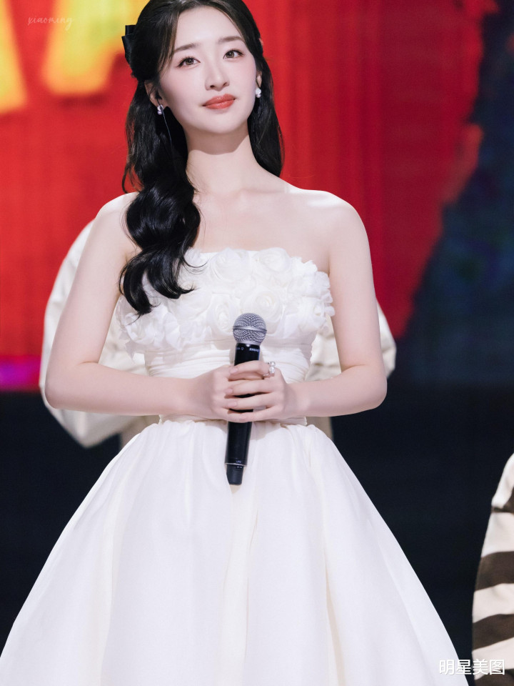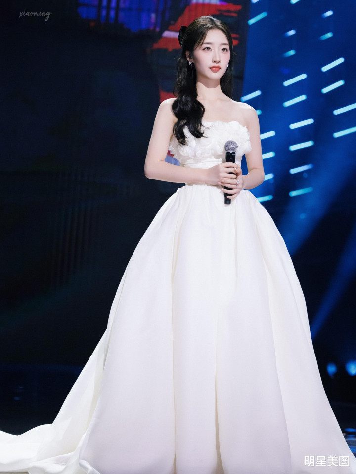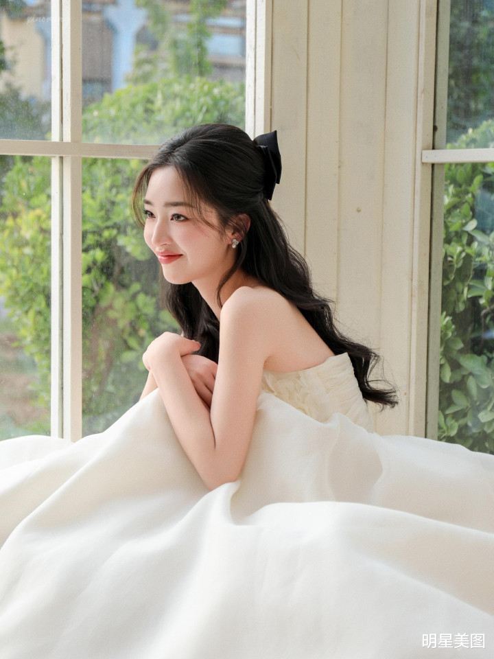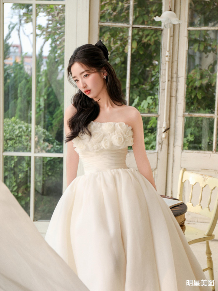 邓恩熙抹胸白裙勾画之间,肩颈线条恰到刚正,蓬松裙摆衬缔造姿纤细