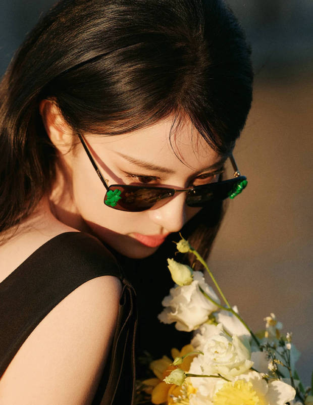 王楚然折腰轻嗅花束,在暖光中平和又诊治。