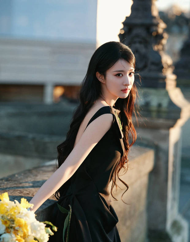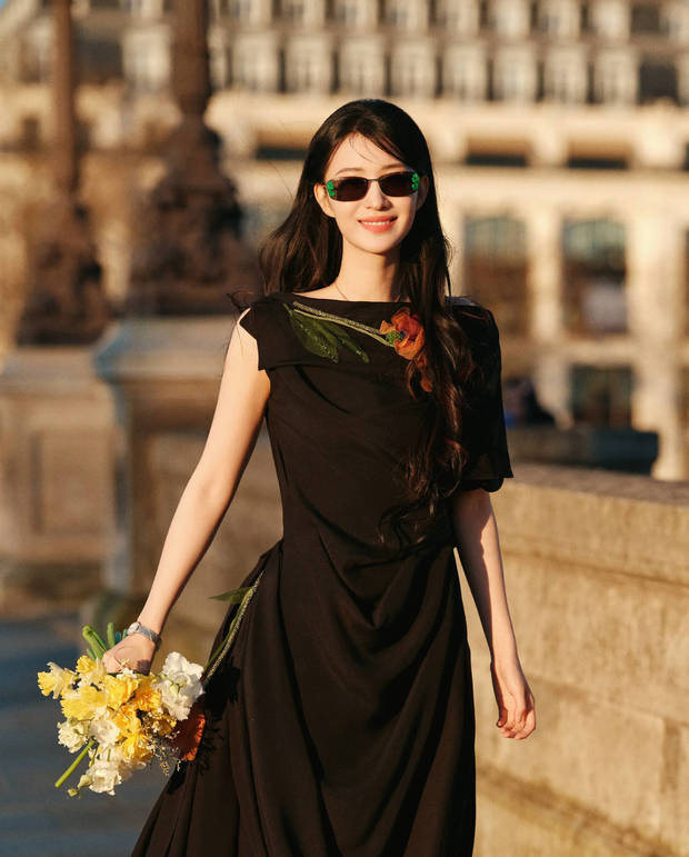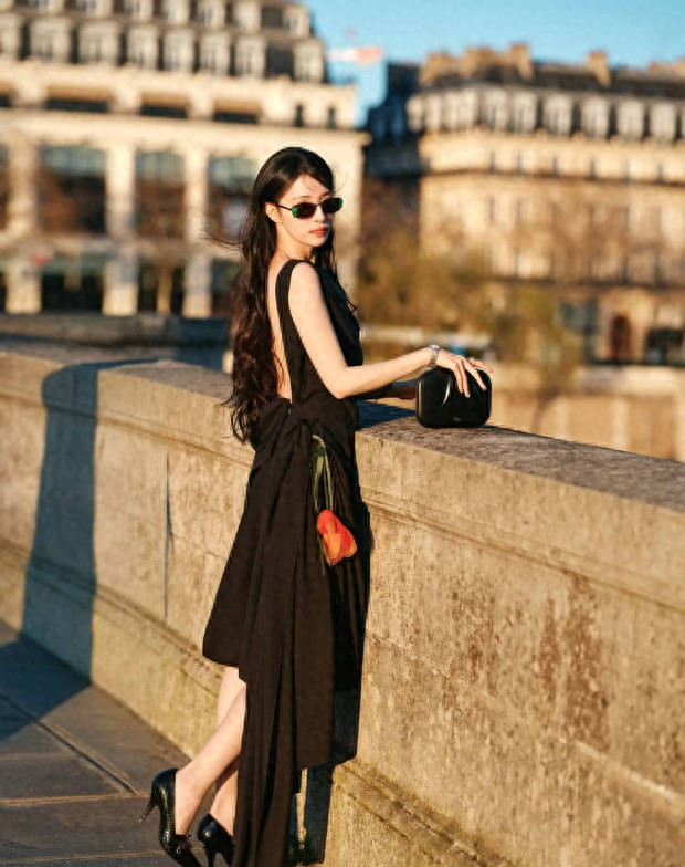 王楚然身着玄色立体花饰露背裙,手抓花束在巴黎桥边含笑,易游app尽显优雅又明媚的规范氛围。