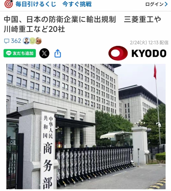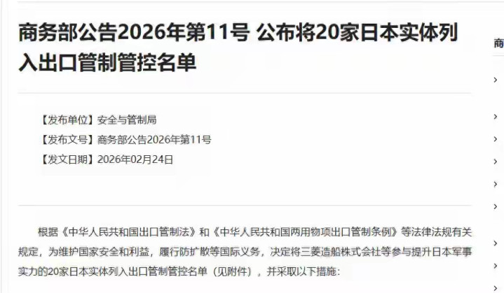 2月24日,农历大年头八,就在绝大多数中国东谈主罢放假期、刚刚开工的第一天,中国商务部投下“重磅炸弹”:笔据11号公告,中方决定将三菱造船株式会社、川崎重工、翔实大学等20家日本实体列入出口料理管控名单 。