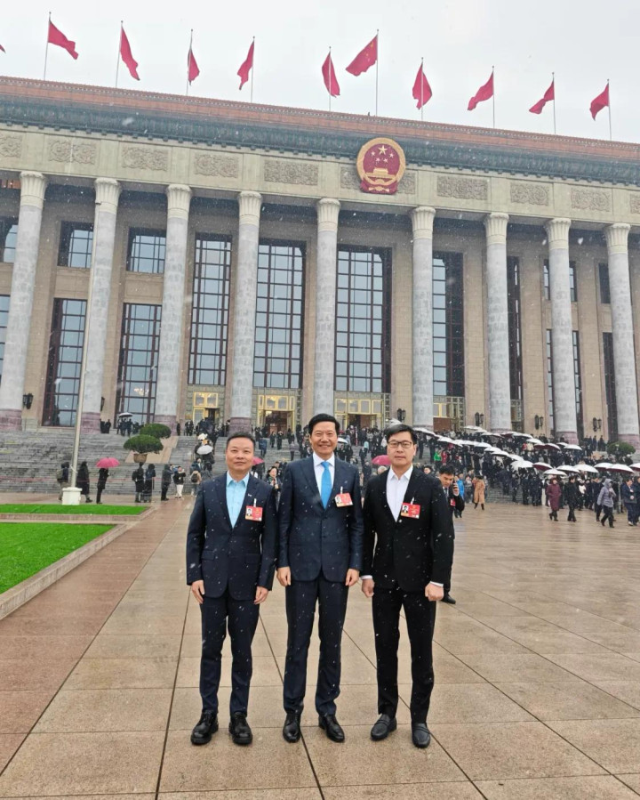 雷军背着双肩包来到现场,他打扮的很朴素。雷军和小鹏汽车的何小鹏、58同城的姚劲波沿途站在广场上拍照。这是26年的第一场雪,何小鹏说“瑞雪兆熟年”。雷军站在中间身姿挺拔,他个子真高。