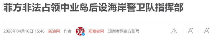 菲方坐法占领中业岛后设海岸警卫队携带部——不雅察者网