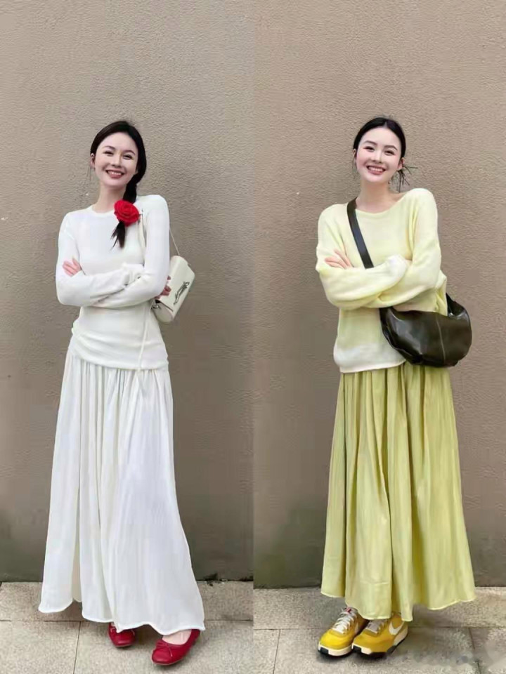 易游娱乐 女生春日穿搭, “长款半身裙”慵懒粗疏, 又好意思