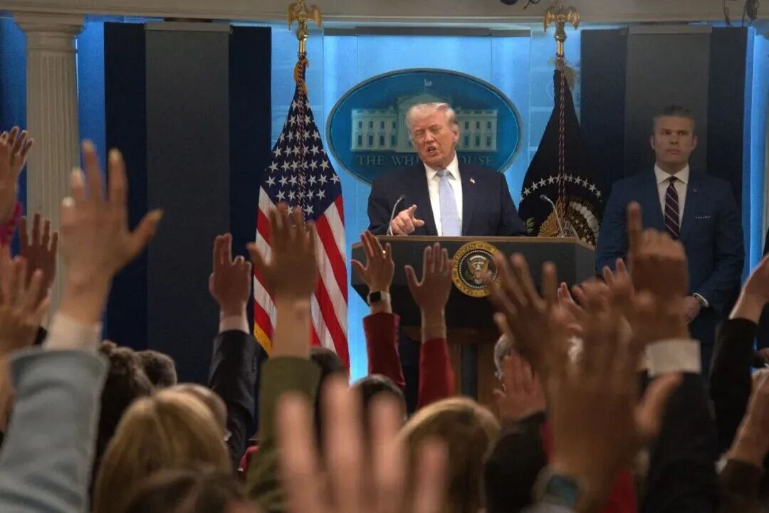 4月6日,好意思国总统特朗普在王人门华盛顿白宫举行的新闻发布会上语言。新华社发(李源清摄)