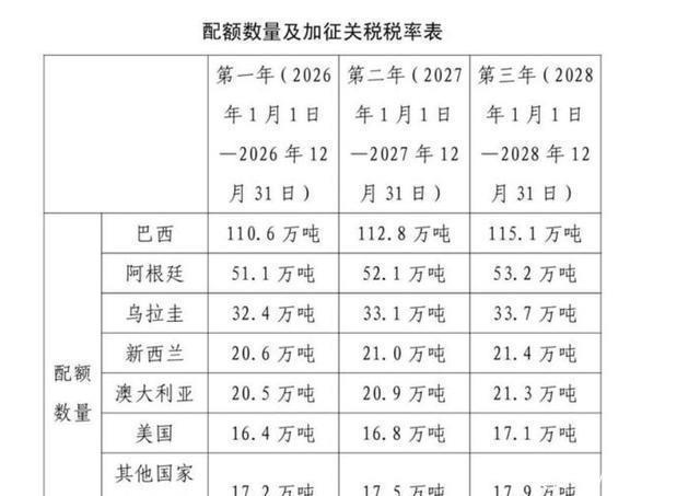公告内容无聊却致命,自2026年1月1日起,对入口牛肉实施 为期三年 的保险措施,这不单是是一个粗拙的死一火,其中枢在于对“国别配额”的精妙联想。 在这份新的生意版图中,澳大利亚只是获取了 20.5万吨的份额 。