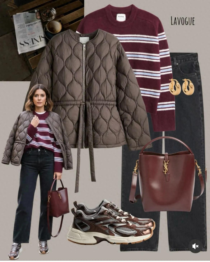 零格薄棉服碰无意乎逐渐回暖的天气,互助收腰缱绻,虚心外衣也不以为肥胖。搭酒红底色的彩条毛衣,用酒红因循老爹鞋换掉高跟鞋,拎同色水桶包,轻快外出吧。