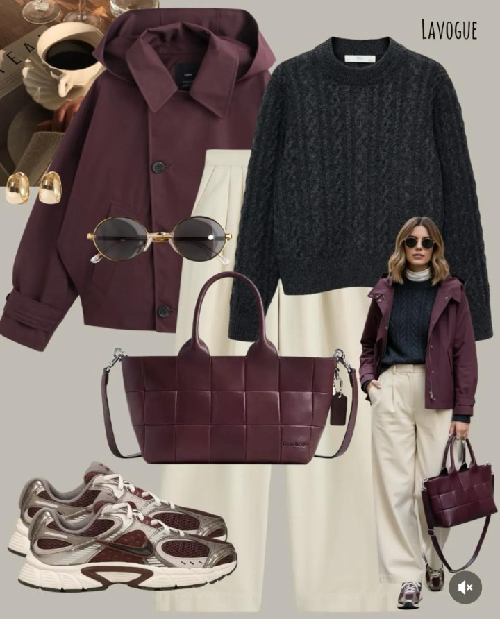 虽然还有很合乎多风的春季穿的风衣啦。短款配廓形的连帽款,还有紫红色的别致,王人能建立一件好外衣。全身总共单品王人以酒红勾搭,只保执内搭口角两色的干净,又是孤苦轻巧悦方针搭配啦。