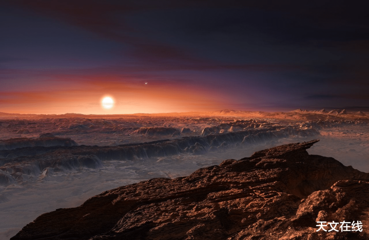 艺术家对半东谈主马座比邻星系统中某颗行星名义的念念象图。图片起首:欧洲南边天文台M.科恩梅瑟