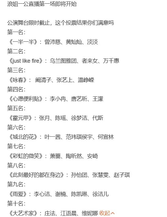 领先即是审好意思疲倦,诚然这档节目刚驱动有些创意极新感,热度高,但背面每下愈况,练习了阵势后就知说念,节目比赛险些没啥有趣,即是平台艺东说念主和告白商自娱自乐不雅众买单,莫得很惊艳的唱跳,决赛成团亦然虚晃。