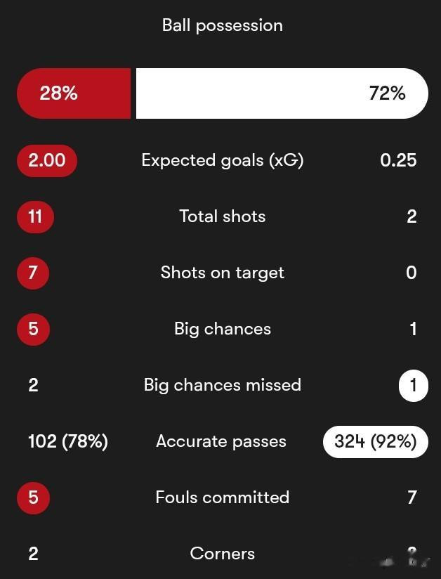 而从半场数据来看,拜仁除了空有控球率和犯规数据除外,其他统计全面落于下风。